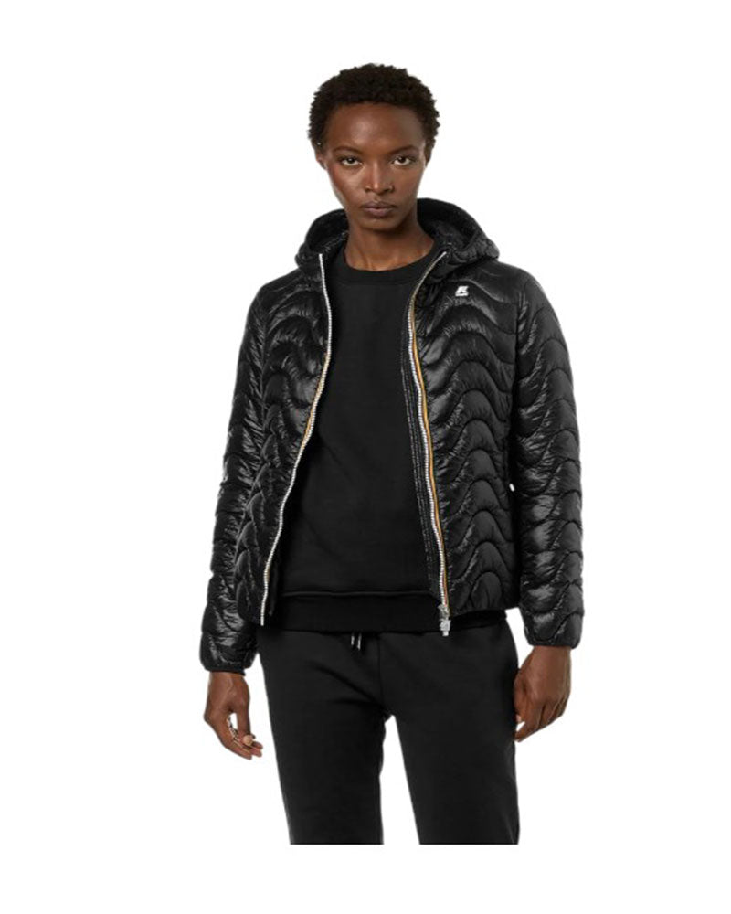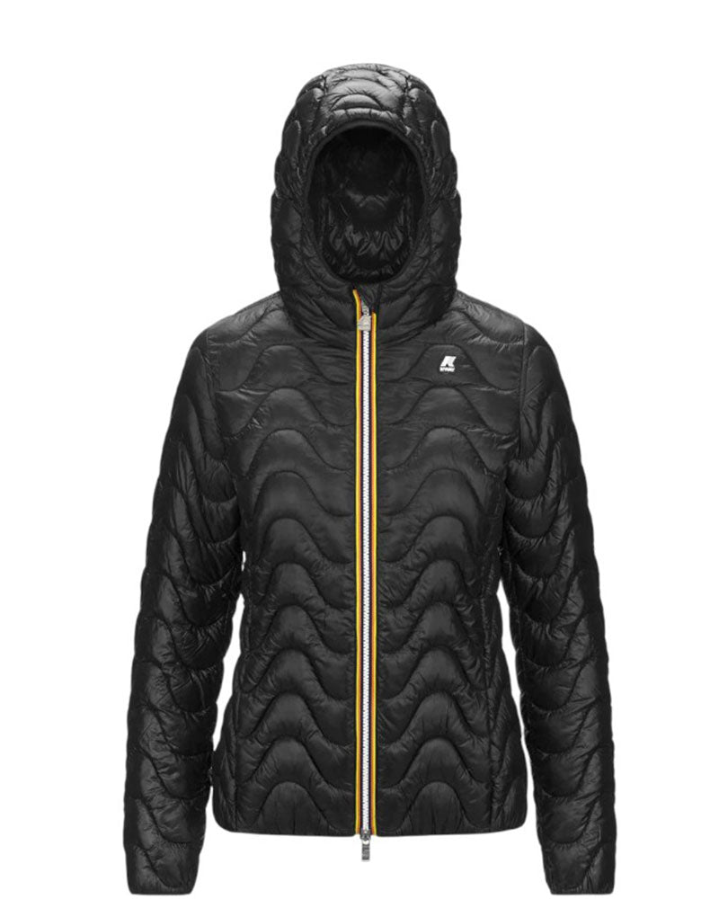 Giubbino trapuntato corto caratterizzato da un design dinamico, realizzato in nylon riciclato che offre protezione dal vento e dalla pioggia, impreziosito da una caratteristica trapuntatura ondulata e riempito con imbottitura Thermore®, cappuccio imbottito con bordo elasticizzato, chiusura con cerniere, polsini elastici, logo in silicone bianco.