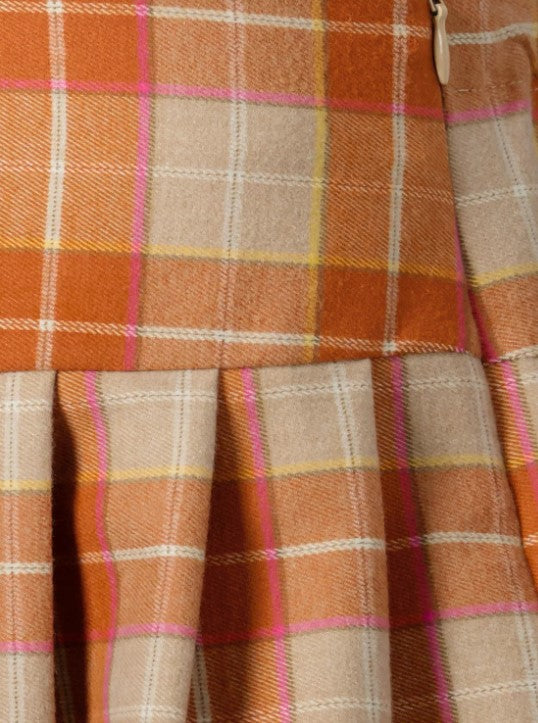 Girls' pleated wool skirt, tartan pattern, side zip fastening.