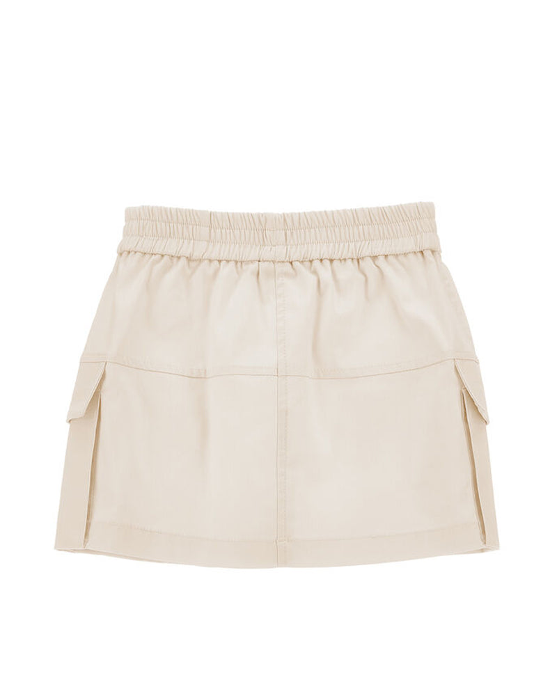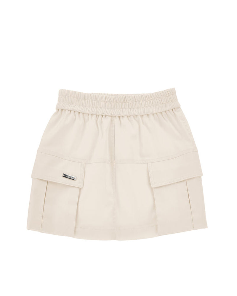 Gonna corta con vita elasticizzata, tasche laterali applicate.
