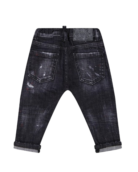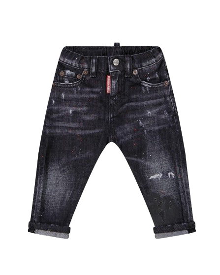 Newborn jeans, featuring an elasticated waist, belt loops, 5-pocket style, with zip and buttons.