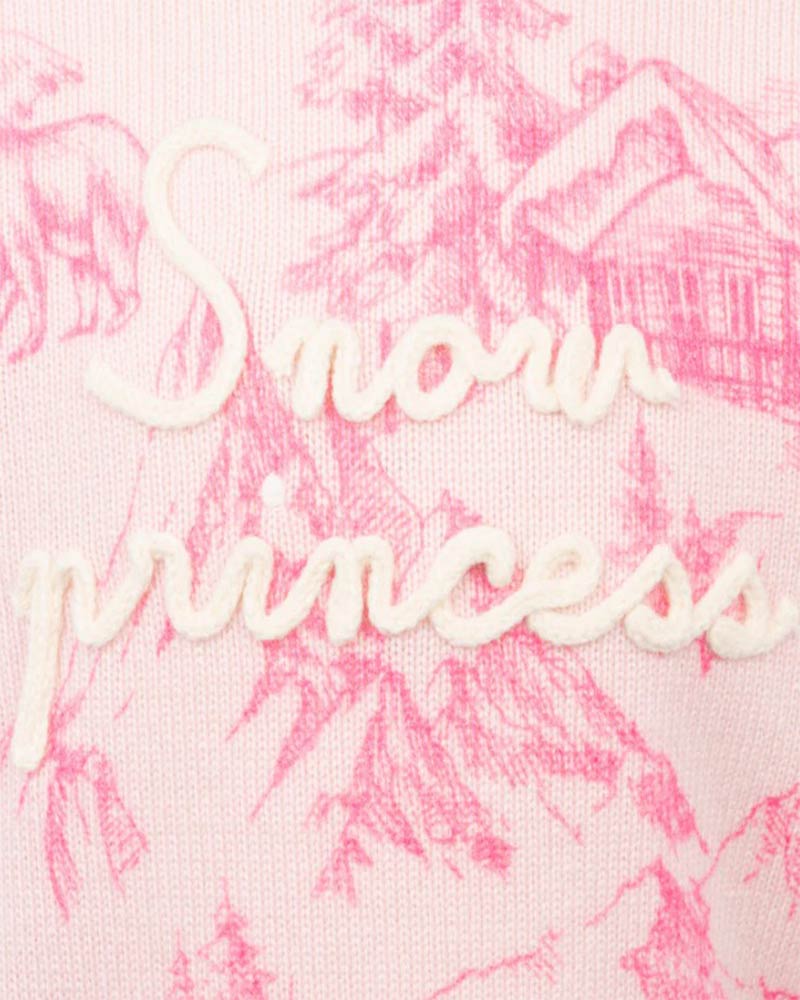 Maglia da bambina Princess realizzata in misto lana e cashmere. Presenta fantasia Toile De Jouy all-over, collo tondo, maniche lunghe e finiture a coste. È decorata con ricamo Snow Princess in rilievo sul davanti.