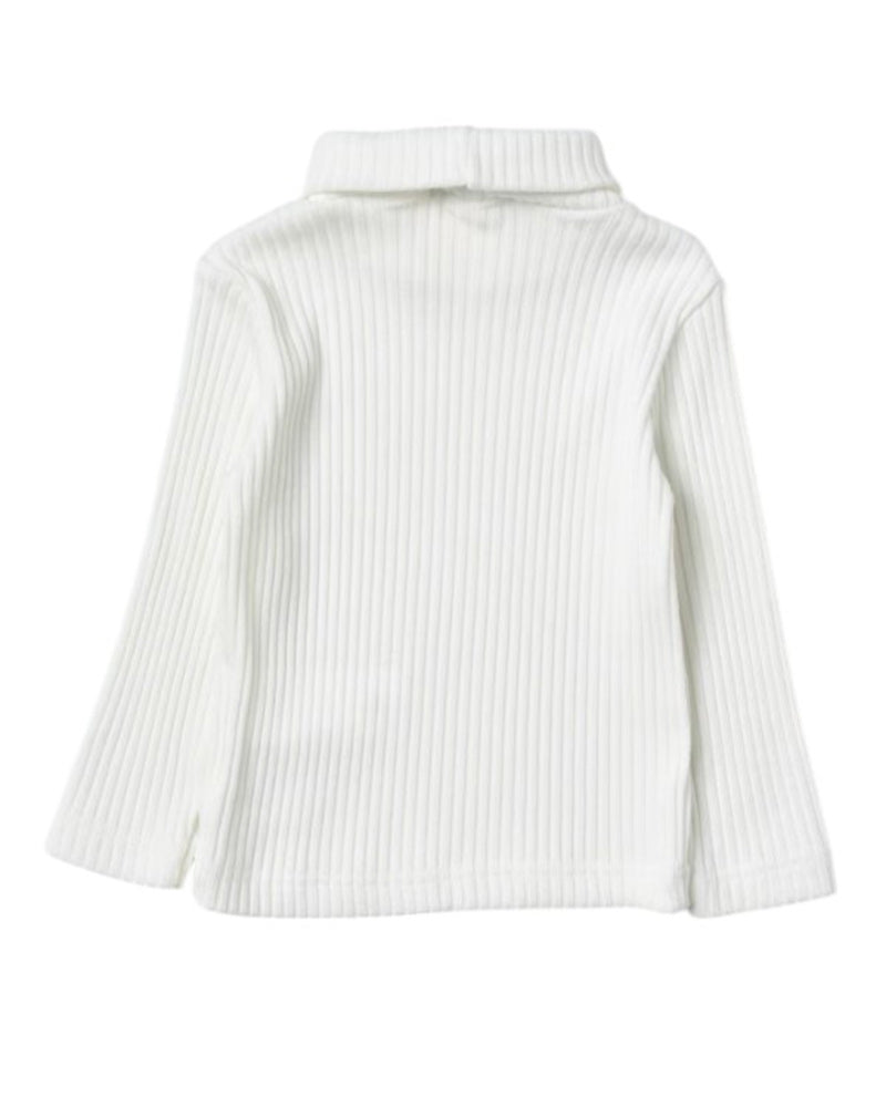 Dolcevita avorio a maniche lunghe con design a coste da neonato. È decorata con patch logo applicata sulla parte anteriore.