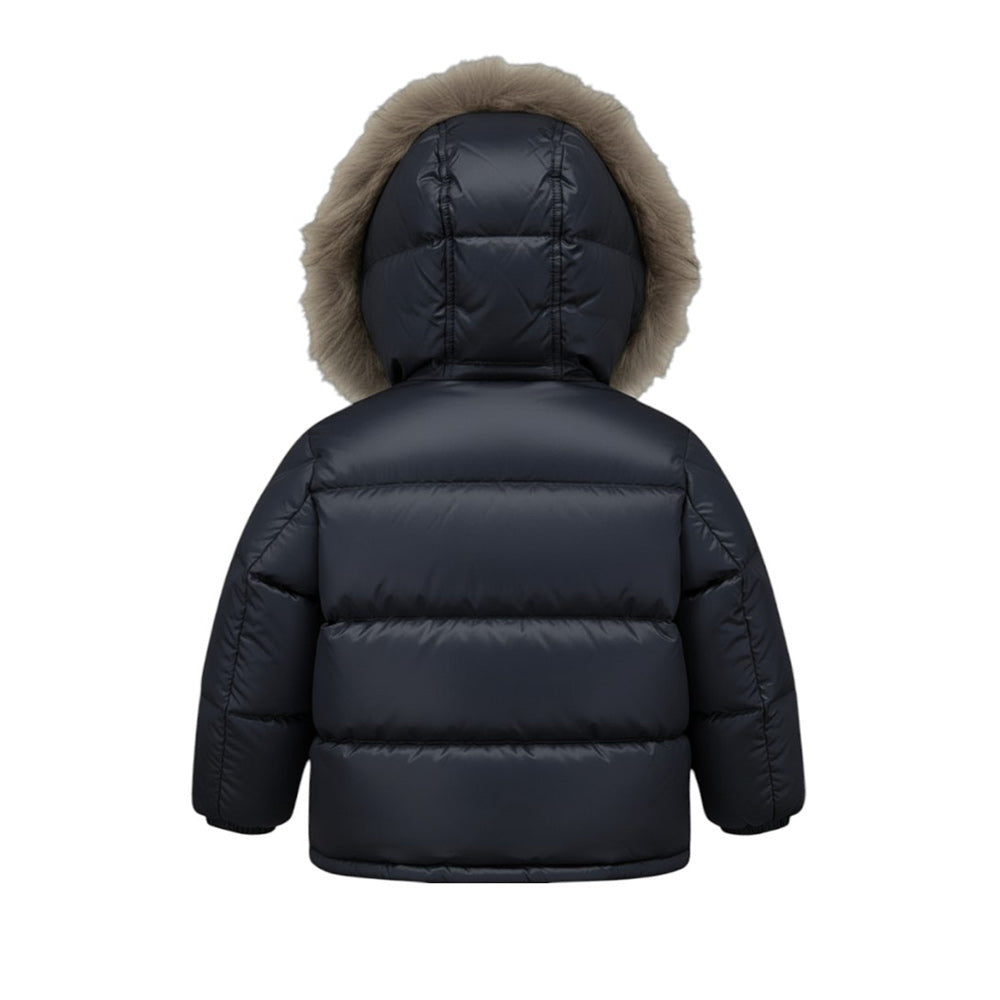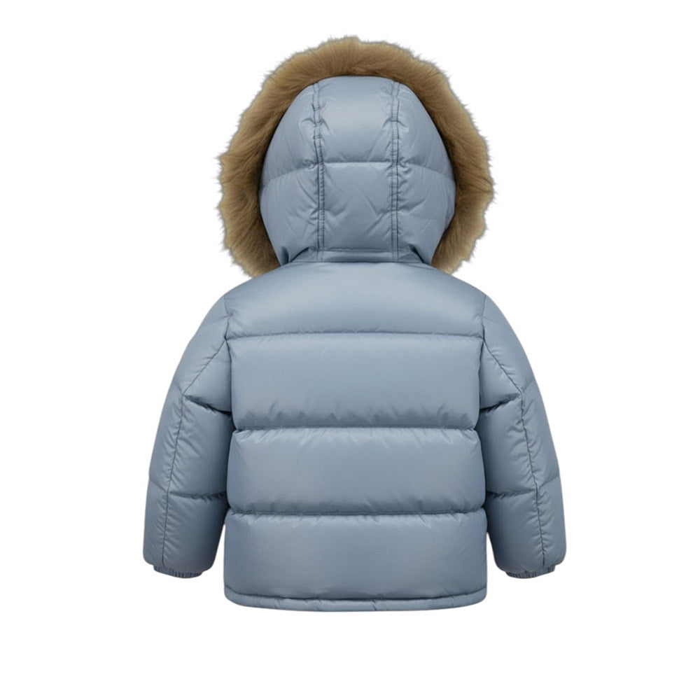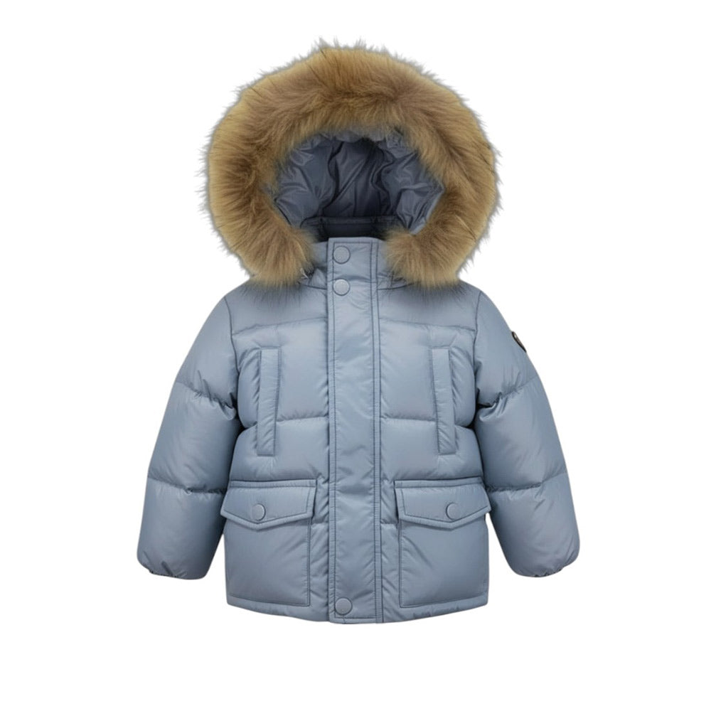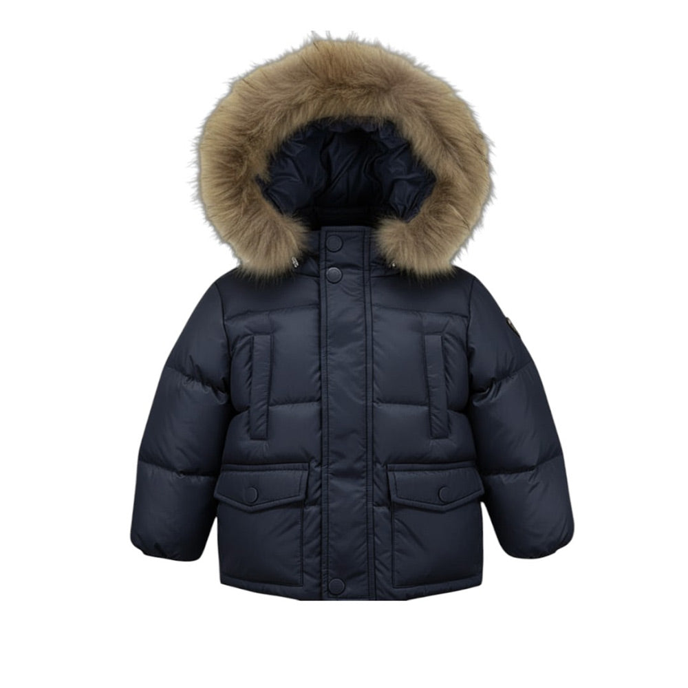 Quilted jacket, patch pocket with flap, zip fastening, hood with fur.