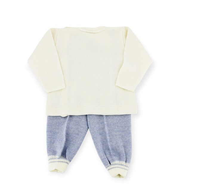Two-piece jumpsuit by Creazioni Luana with braids and buttons on the front.