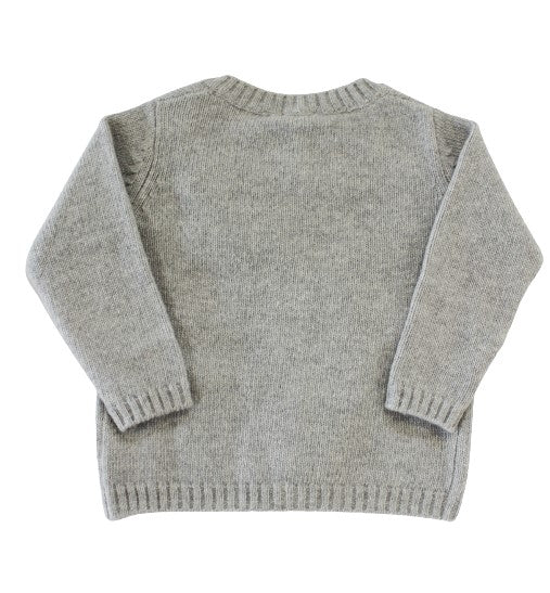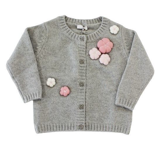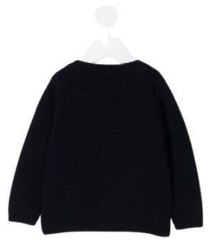Cardigan sweater with button fastening on the front, contrasting embroidery and applications.