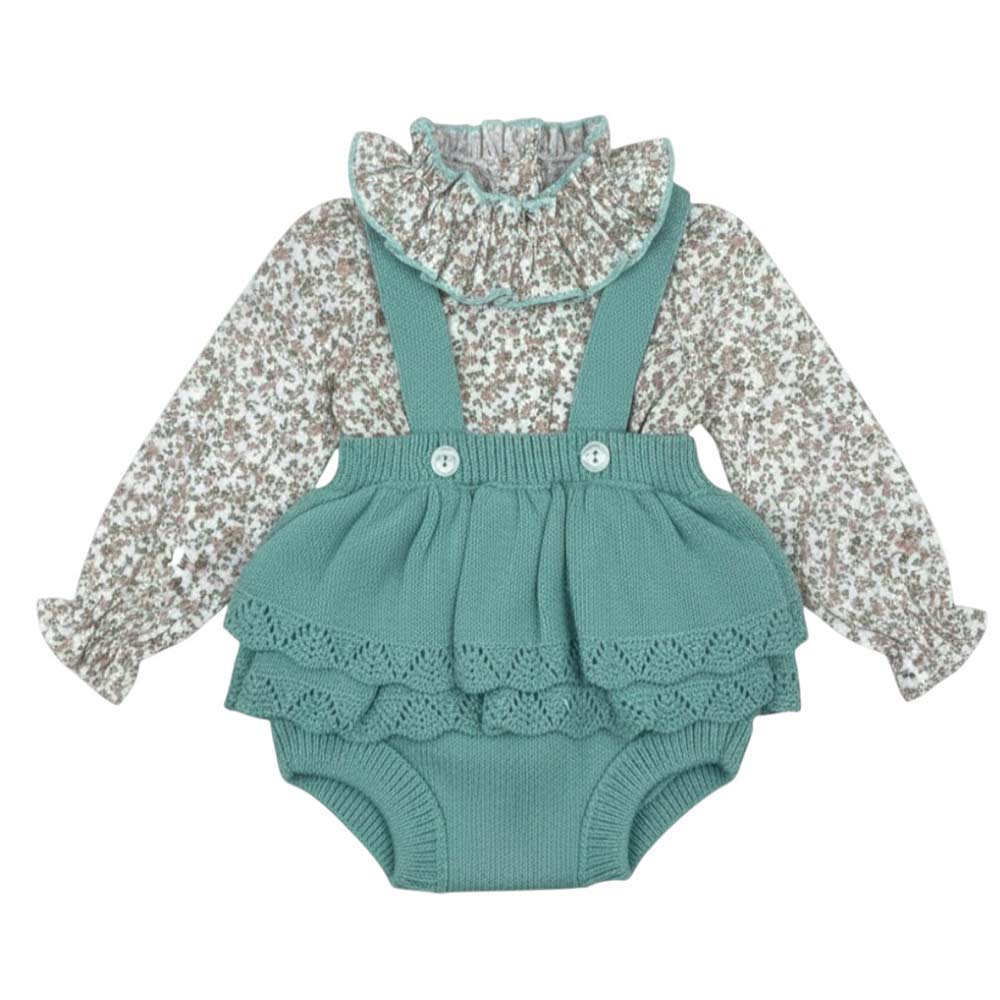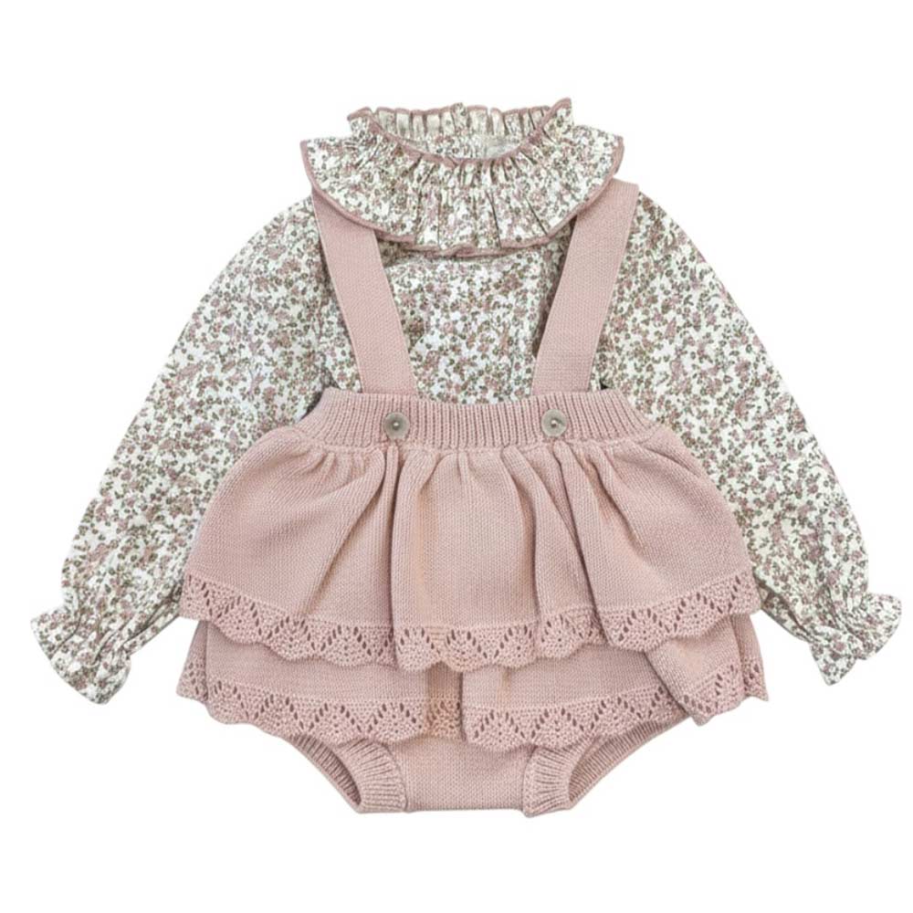 camicina fantasia floreale con colletto a rouches ed elastico ai polsini