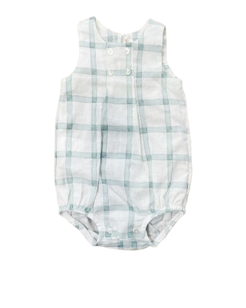 Pagliaccetto in misto lino con bottoncini sul davanti fantasia a quadri