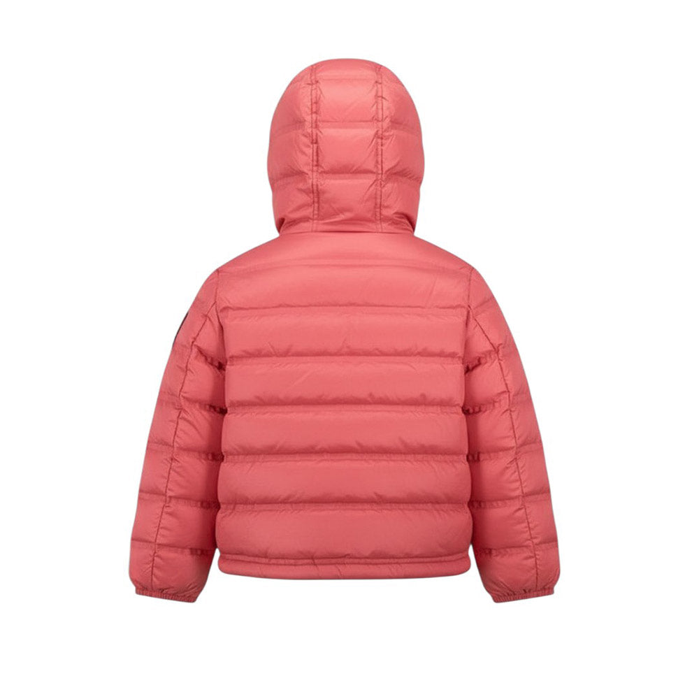 Giubbino 100 grammi realizzato in nylon. Presenta design trapuntato, cappuccio fisso, chiusura frontale con zip, due tasche a filetto con bottoncino a pressione e orlo dritto. È decorato con toppa e passante con logo.