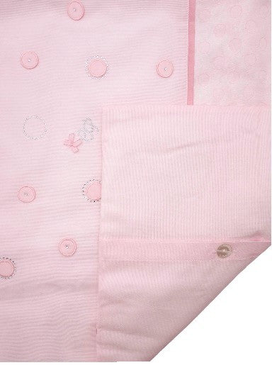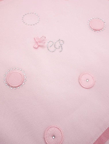 Carlo Pignatelli blanket/duvet padded in pink cotton. Model with polka dot pattern and rhinestones applied.