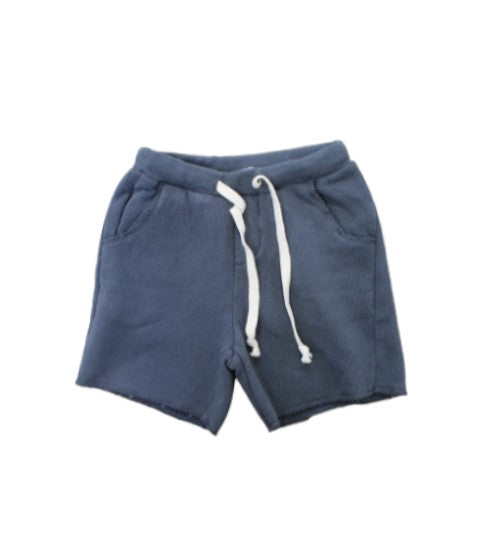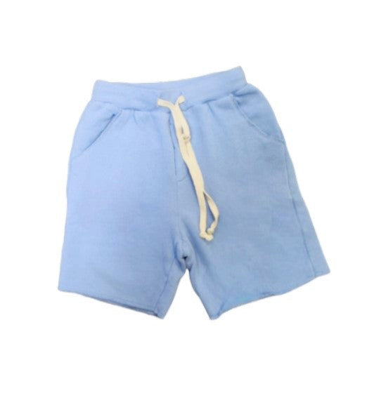 Cotton fleece Bermuda shorts. Elasticated waist with drawstring, round side pockets.