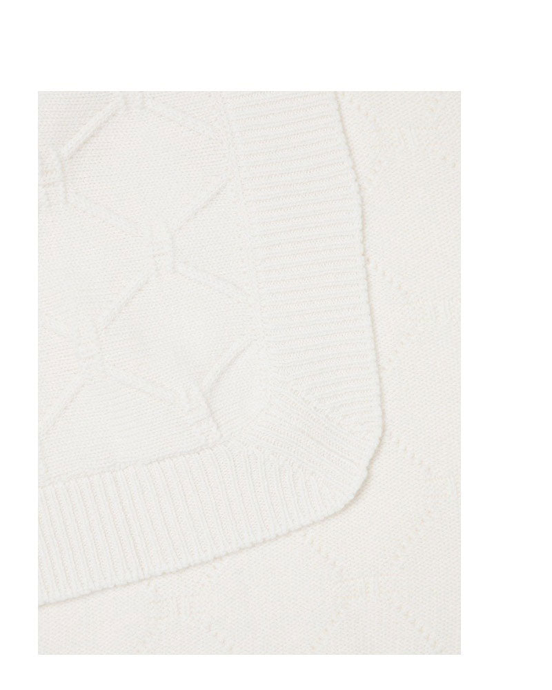 in morbida maglia, a tinta unita, con bordi a costine e lavorazione a losanghe con logo in tinta all over.