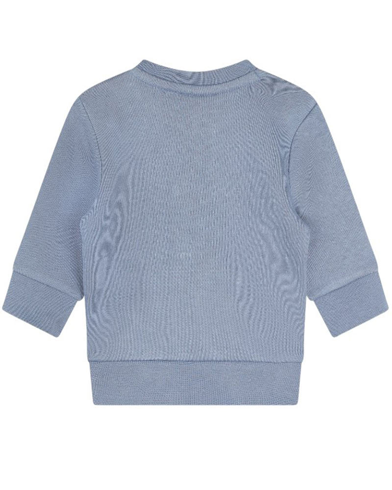 Felpa realizzata in cotone garzato da neonato. Presenta colletto tondo, maniche lunghe, applicazione logo in silicone sulla parte anteriore, chiusura con bottoni automatici sulla spallina e finiture a coste.