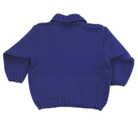 Cardigan sweater, with collar, cable knit pattern, button fastening.