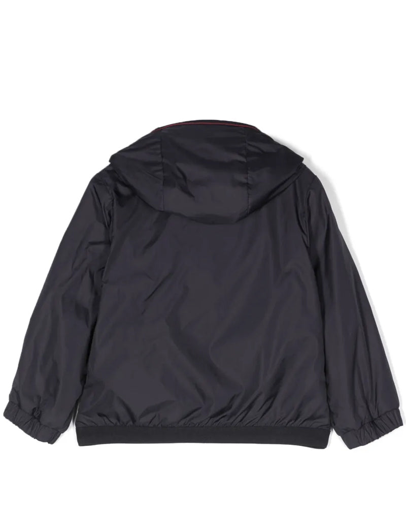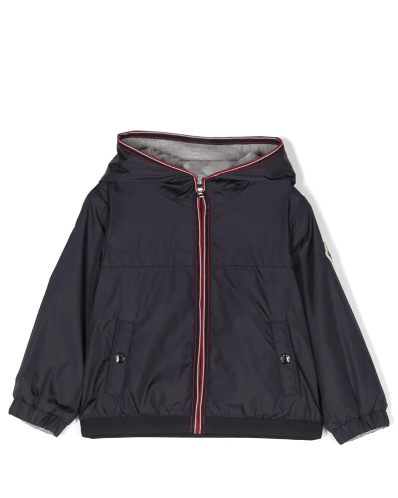 Giubbino con cappuccio a maniche lunghe con patch logo Moncler, polsini elasticizzati, una patch con logo sulla manica, chiusura frontale con zip, maniche lunghe, due tasche laterali con bottone a pressione e orlo dritto.