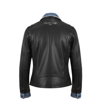 Philipp Plein Giubbino Biker In Pelle Con Dettagli Denim P20CBLB0180
