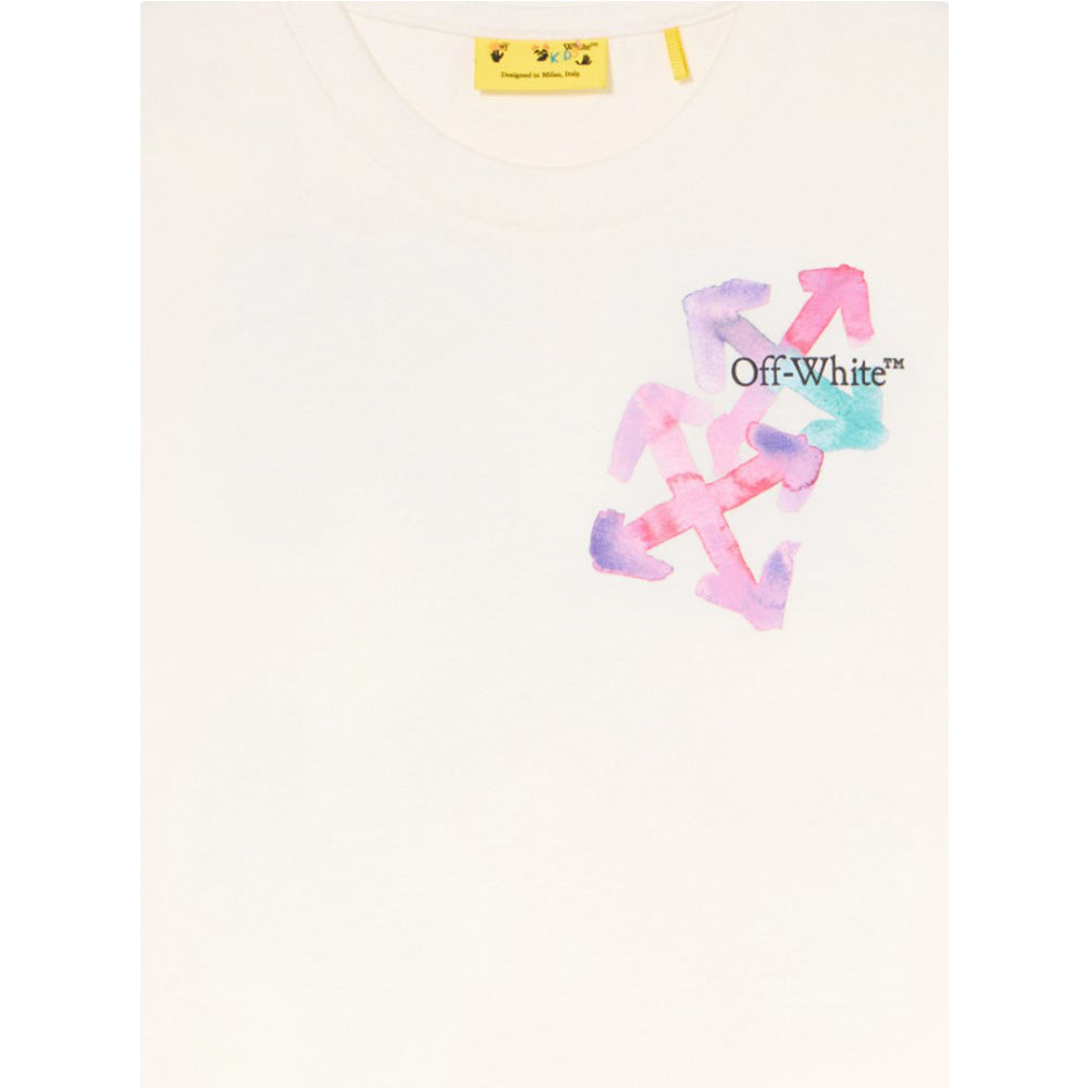 T-shirt realizzata in jersey di cotone, caratterizzata da collo rotondo a costine, maniche corte e orlo dritto. È decorata con logo Off-White stampato sul petto e con motivo a freccia sul retro.