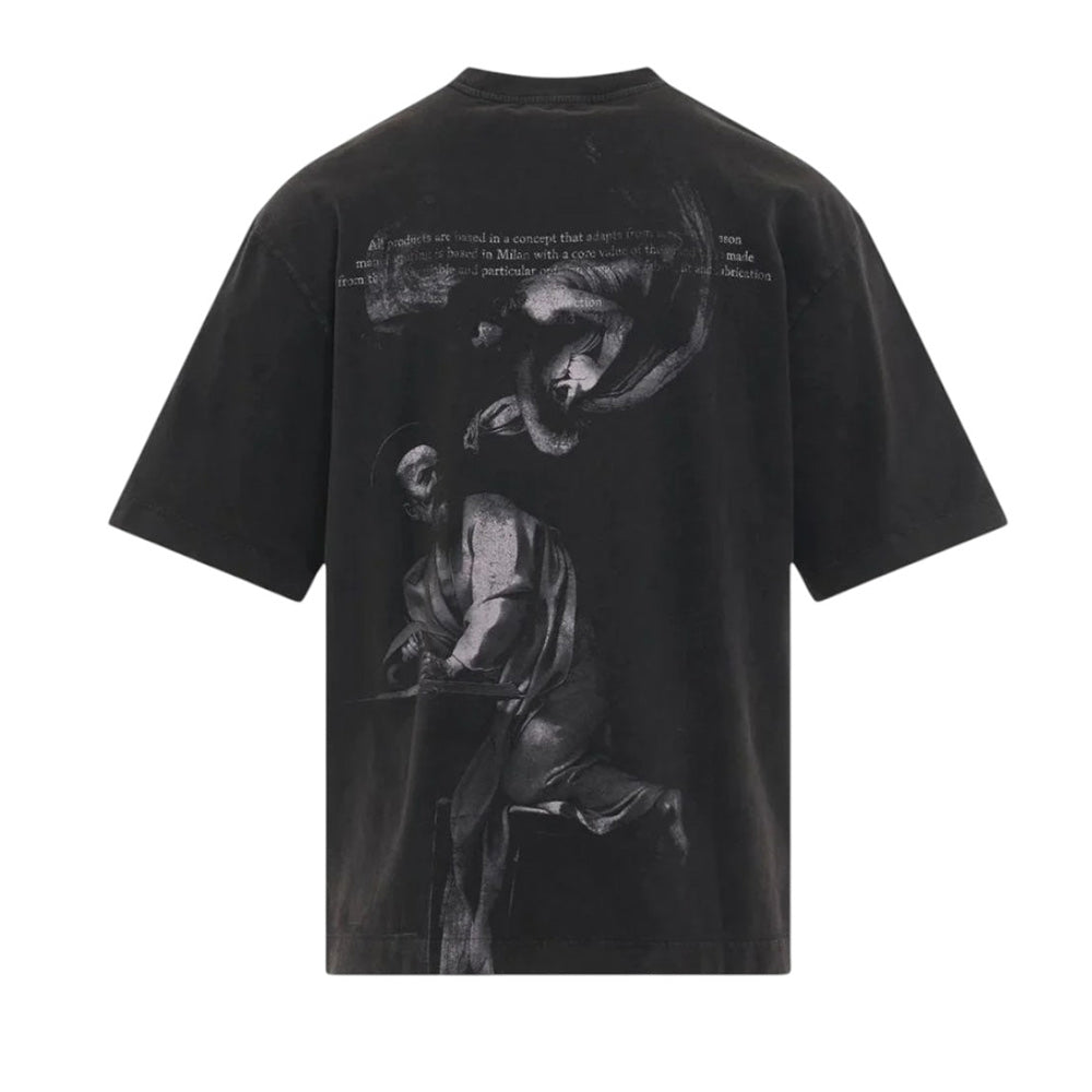 T-shirt realizzata in jersey di cotone, caratterizzata da collo rotondo a costine, maniche corte e orlo dritto. È decorata con logo Off-White stampato sul davanti e con stampa grafica sul retro.