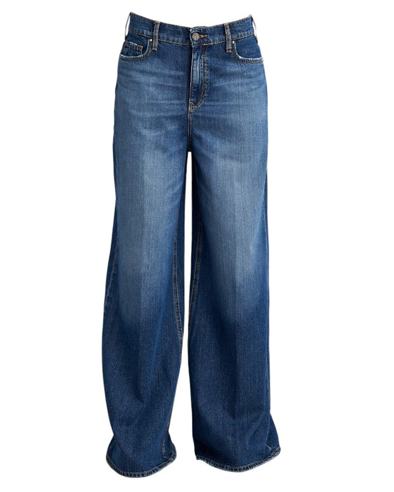 Jeans in denim di cotone, modello cinque tasche, chiusura frontale con bottoni e zip, gamba dritta.
