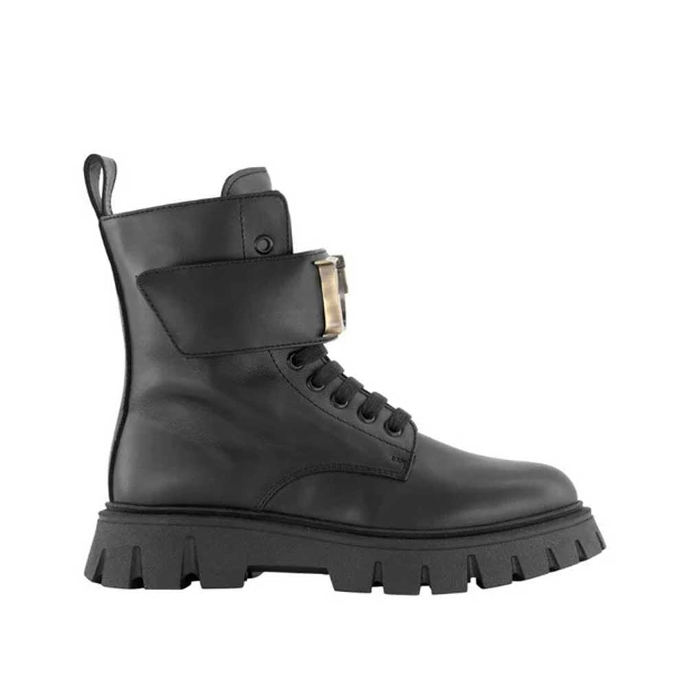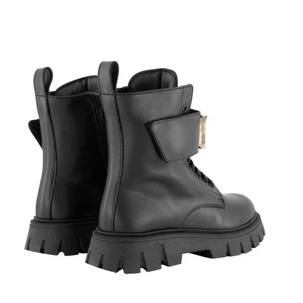 Lo stivaletto di Dsquared Kids si presenta con un design carrarmato caratterizzato dalla placca frontale logata che evidenzia il brand. Modello alto alla caviglia, lacci superiori, punta tonda e chiusura laterale con zip. DETTAGLI: -Tessuto: 100% pelle di vitello; Colore: Nero