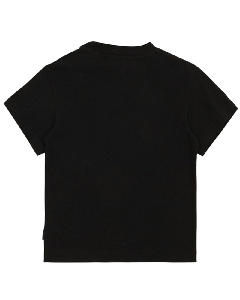 T-shirt realizzata in jersey di cotone, caratterizzata da collo tondo, maniche corte e orlo dritto. È decorata con stampa logo sul davanti.
