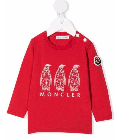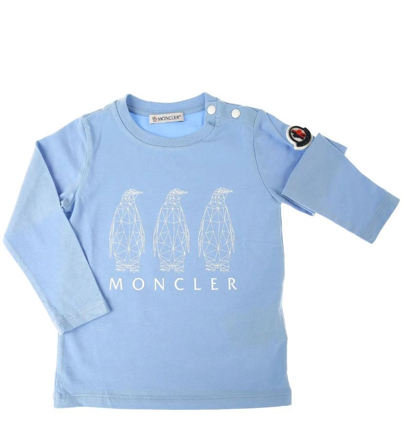 Crew neck, long sleeve T-shirt with logo and front print. Snap button closure on the shoulder.