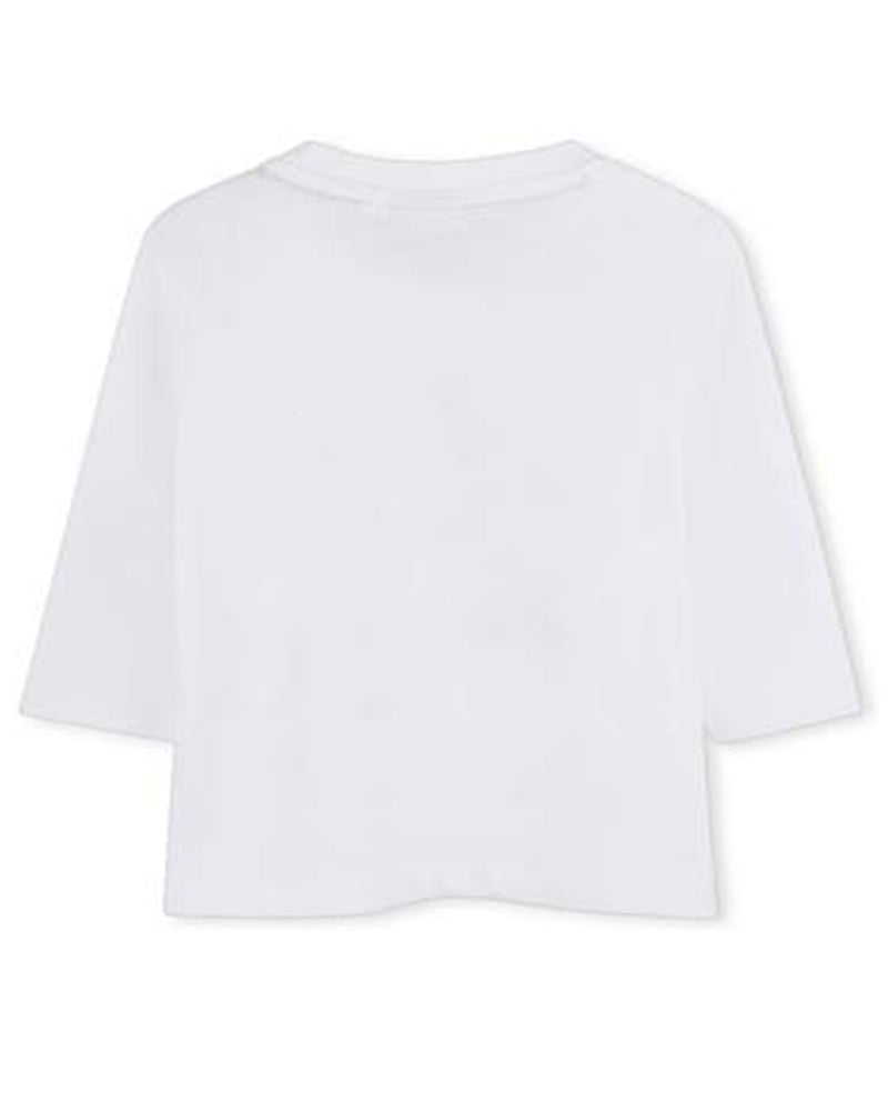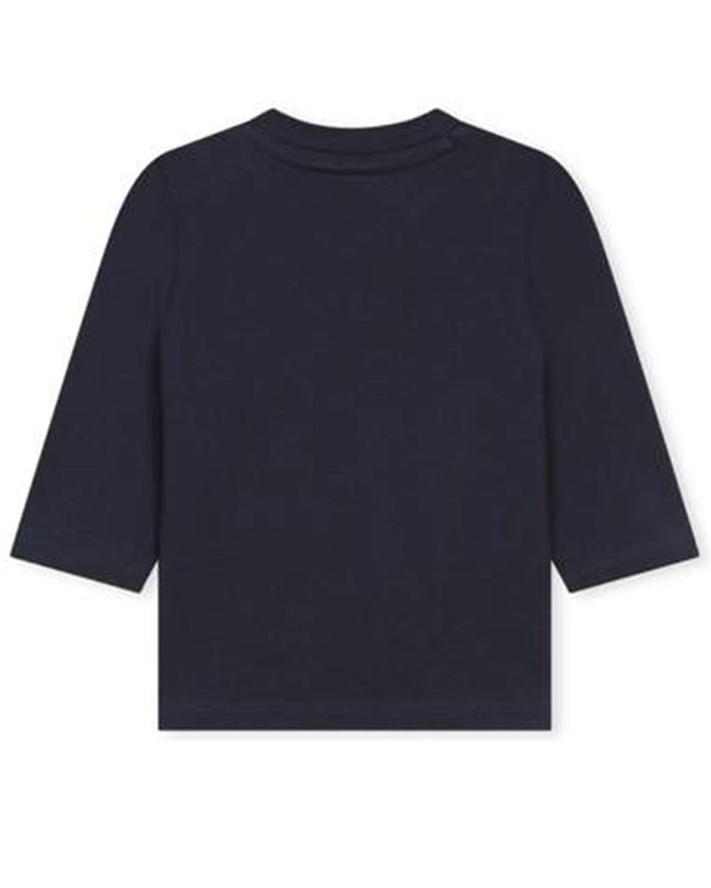 T-shirt a maniche lunghe realizzata in jersey di cotone da neonato. Presenta collo tondo, stampa logo sul davanti, chiusura con bottoncini automatici sulla spalla, orlo dritto.