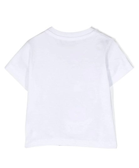Crew neck T-shirt with short sleeves, clip closure on the shoulder, logo and symbol printed on the front.
