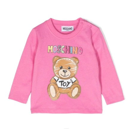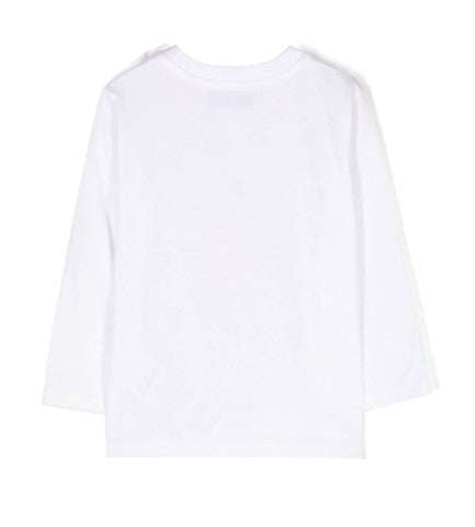 Warm cotton crew neck T-shirt with long sleeves, button fastening on the shoulder, logo and symbol printed on the front.