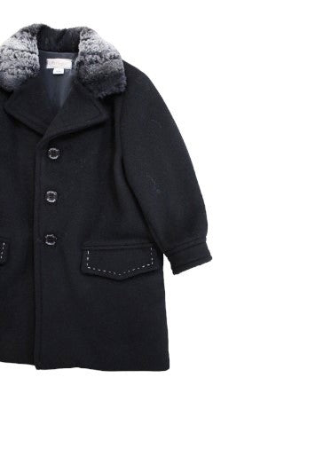 I Preziosi cloth coat with shaded fur collar. Model with pockets on the front.