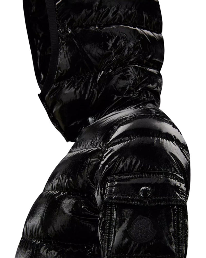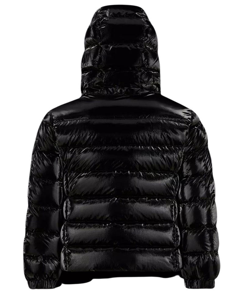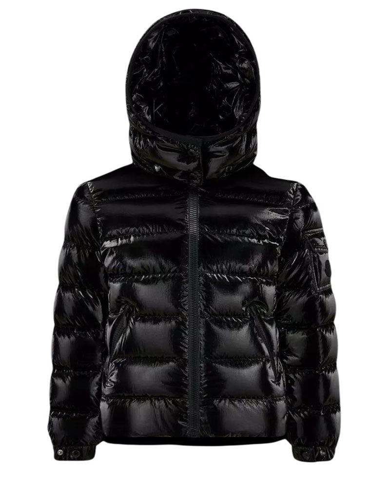 Quilted jacket, removable hood, zip fastening, zipped American pockets, applied logo.