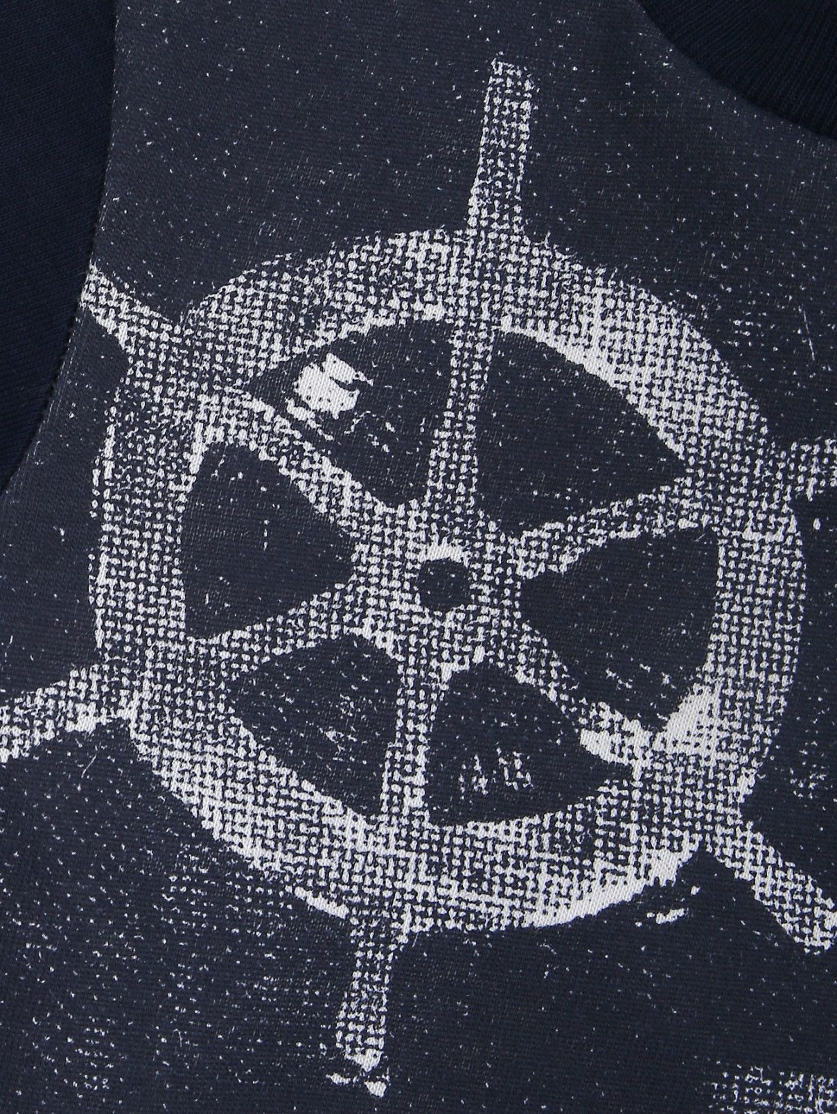 Crew neck short sleeve T-shirt with front print. Button closure on the shoulder.