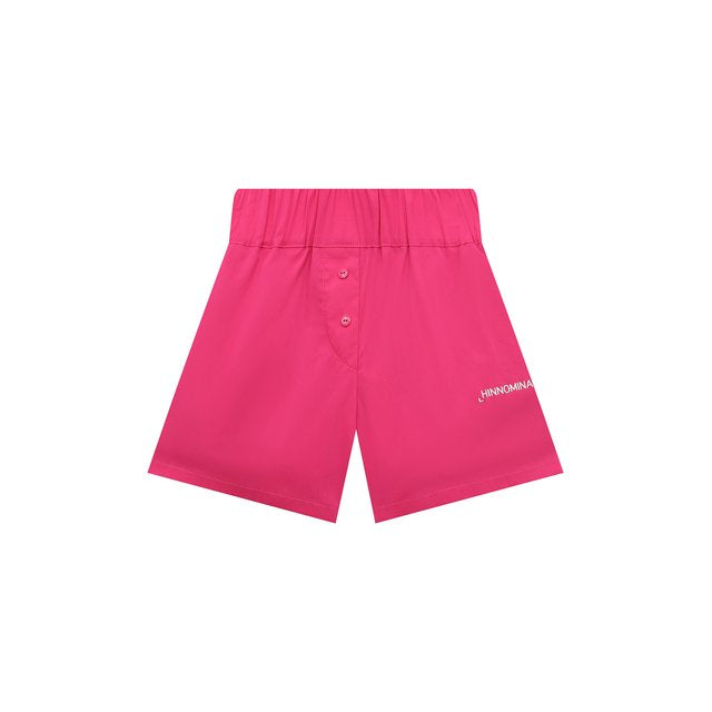 Girls' cotton shorts, elasticated waist, decorative buttons on the front, logo printed on the front.