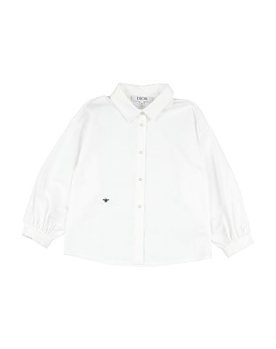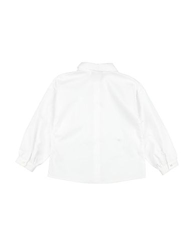 Long sleeve shirt with classic collar, front button fastening, gathered sleeves, embroidered symbol on the front.