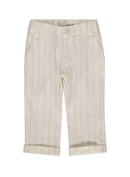 Ribbed pattern trousers, American pocket, button fastening, gathered hem.