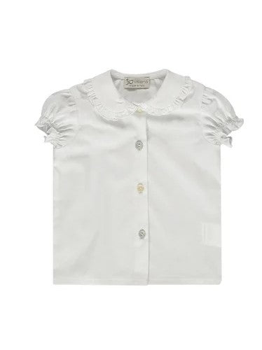 Cotton shirt with short puff sleeves, round collar with ruffles, front button fastening.