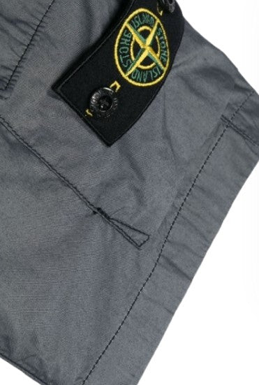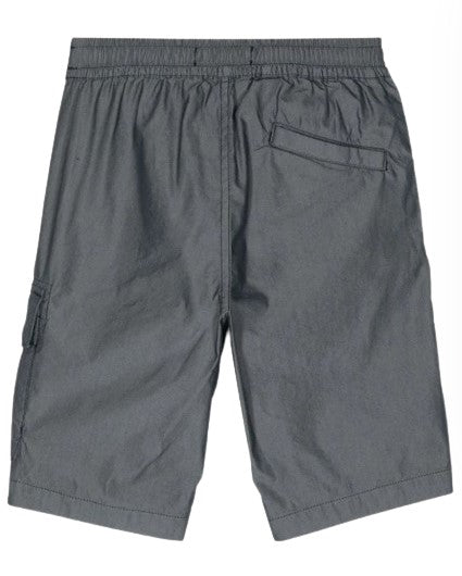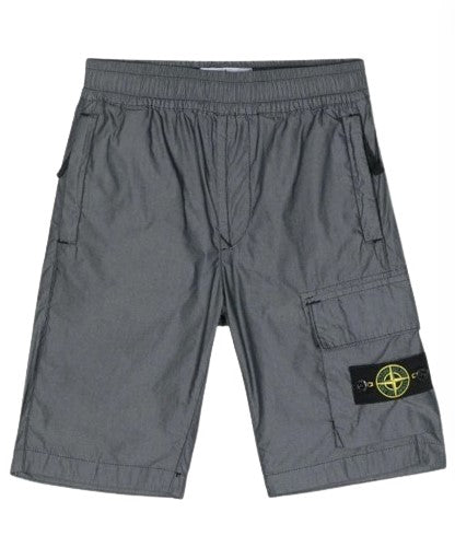 Baby Bermuda shorts made of cotton, cargo model. Elasticated waist with drawstring. Side pockets with zip and a patch pocket on the leg with removable Stone Island Badge.