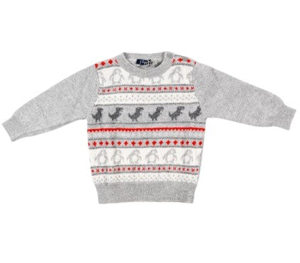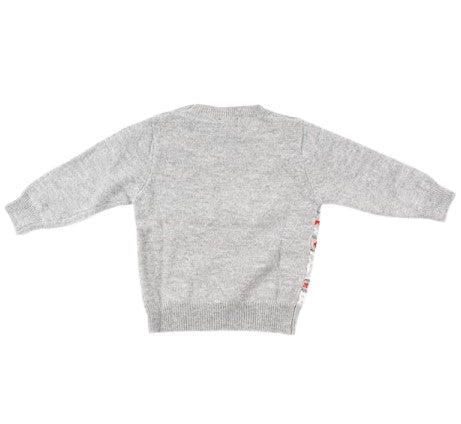 Crew neck wool sweater, with button fastening on the shoulder, in a patterned motif.
