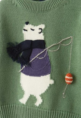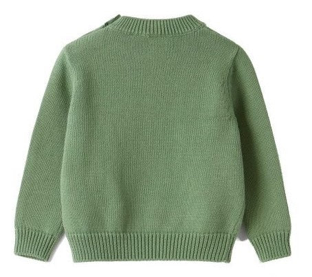 Crew neck sweater, with contrasting embroidery on the front, with button fastening on the shoulder.