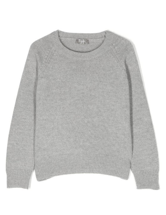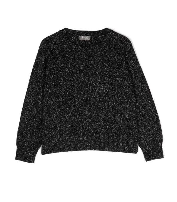 Crew neck wool sweater with cable pattern, lurex effect.