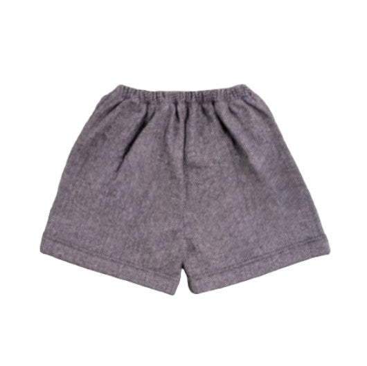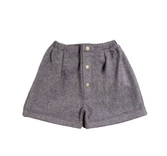 Micro-patterned shorts, elasticated waist, fake button fastening on the front, turn-up hem.