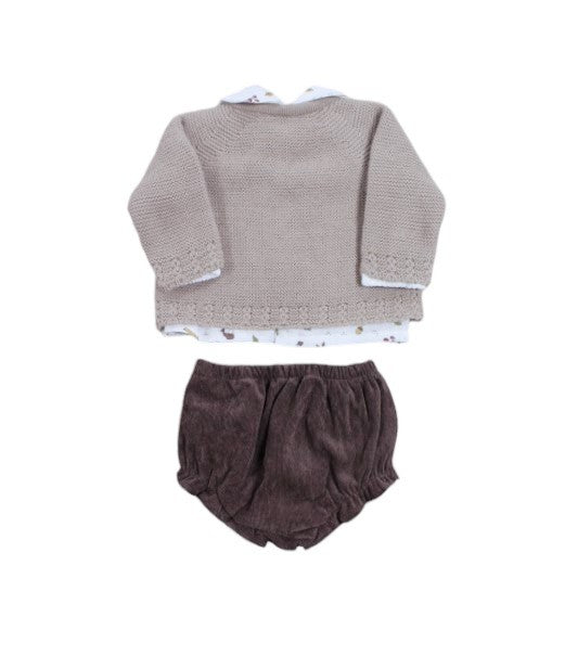 3-piece suit with patterned shirt, corduroy culotte shorts and wool blend jacket with faux wood buttons