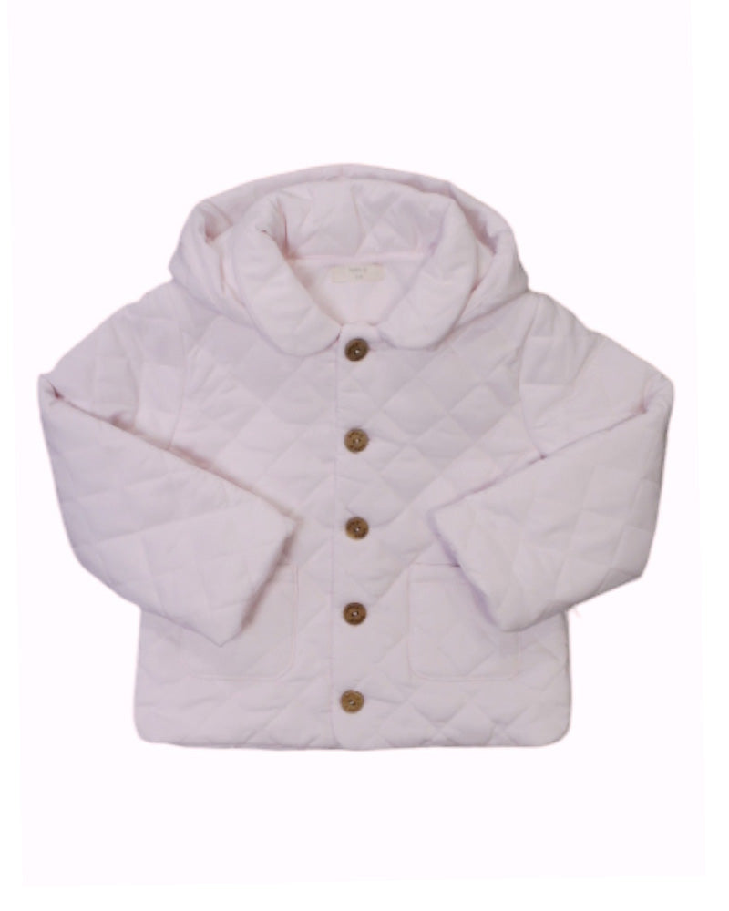 This baby gi jacket is made of lightweight 100% cotton quilting, ideal for keeping your baby warm and comfortable. The wooden button closure ensures stability and safety. In addition, the patch pockets and removable hood make this jacket practical and functional.