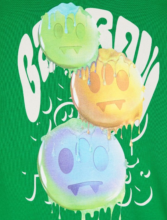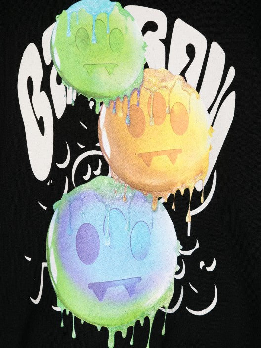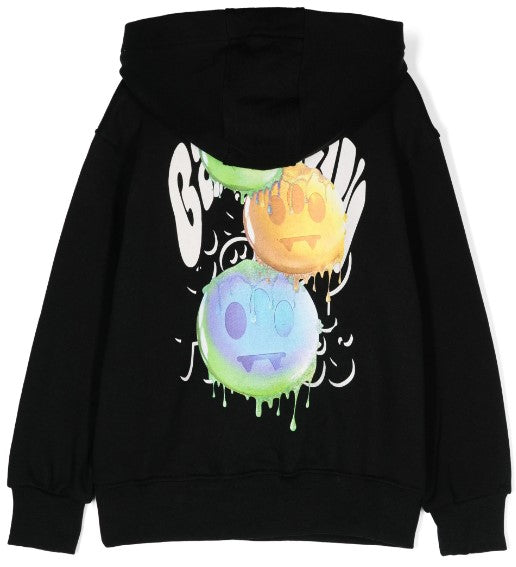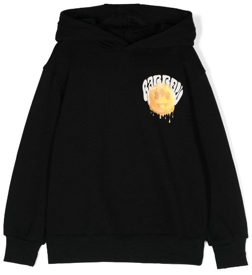 Hoodie made of fleece cotton, features long sleeves, smile print on the chest and print on the back, ribbed hem and cuffs.
