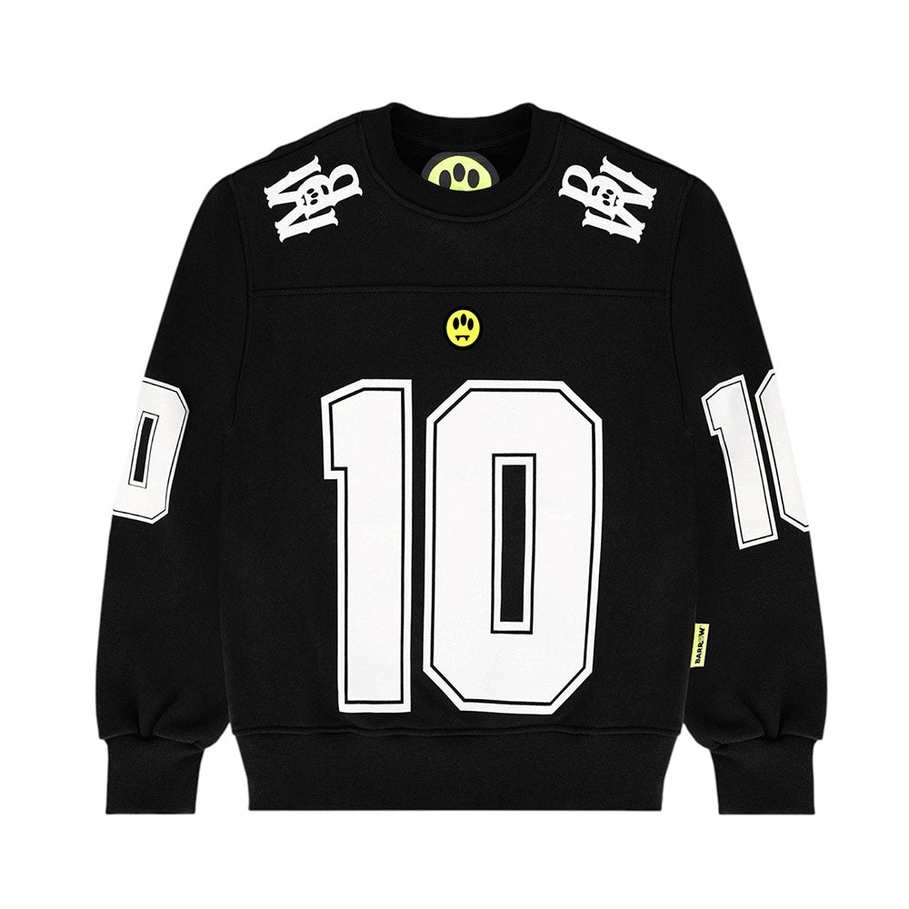 Felpa realizzata in cotone garzato, caratterizzata da collo tondo, maniche lunghe, fodera in pile e finiture a coste. È decorata con maxi stampa numerica sul petto e sulle maniche, ispirata alle divise da football americano.