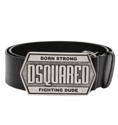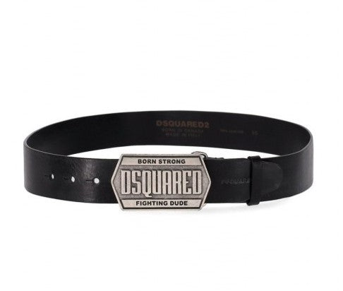 Dsquared2 belt made of black leather with maxi metal logo buckle. Height 4 cm.