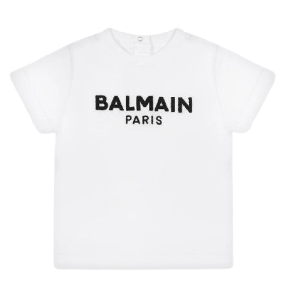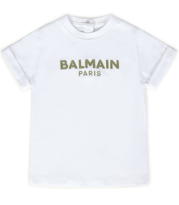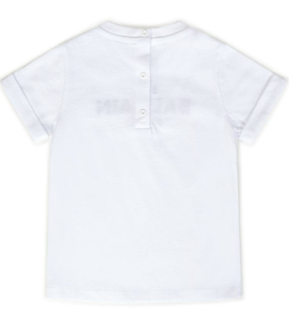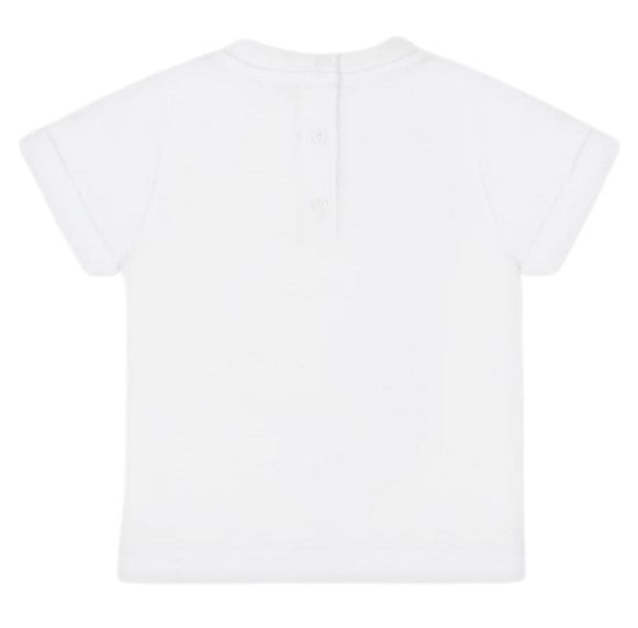 Crew neck, short sleeve T-shirt, clip closure on the back, contrasting embroidered logo on the front.