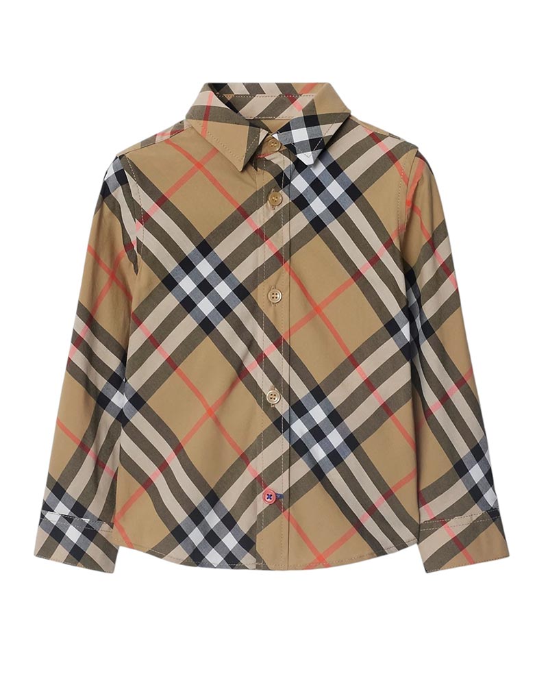 Camicia in popeline di cotone intessuto con Burberry Check. Presenta colletto a punta, chiusura con bottoni, maniche lunghe e orlo curvo.