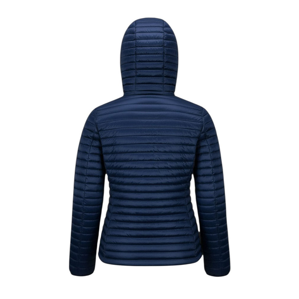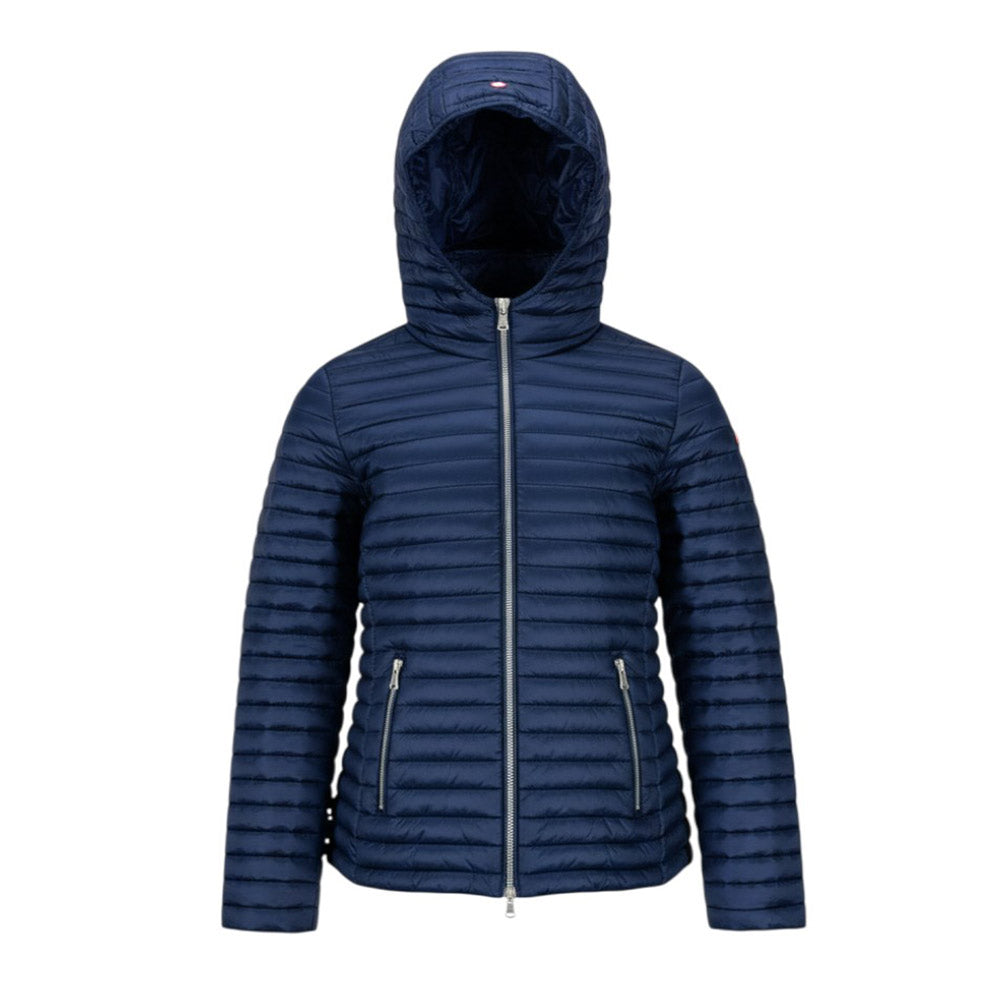 Giubbino 100 grammi, realizzato in nylon. Presenta design trapuntato, cappuccio fisso, chiusura frontale con zip, maniche lunghe, due tasche laterali a filetto con zip e orlo dritto. È decorato con patch logo applicata sulla manica.