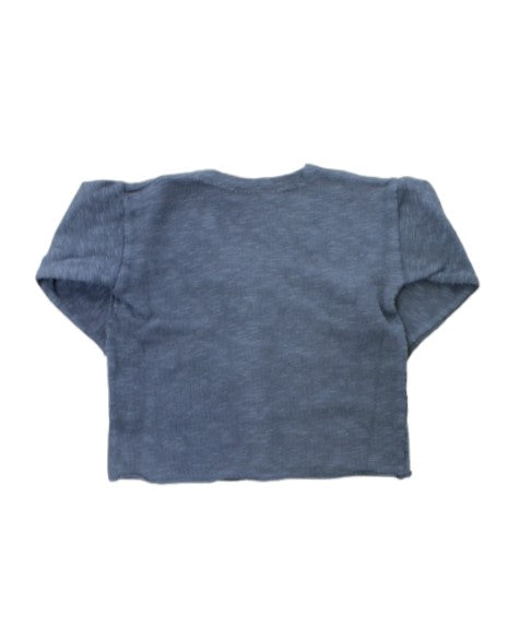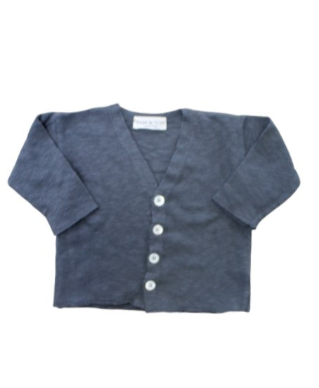 Cardigan sweater in cotton yarn. Raw stitch at the hem and sleeves. Front closure with buttons.