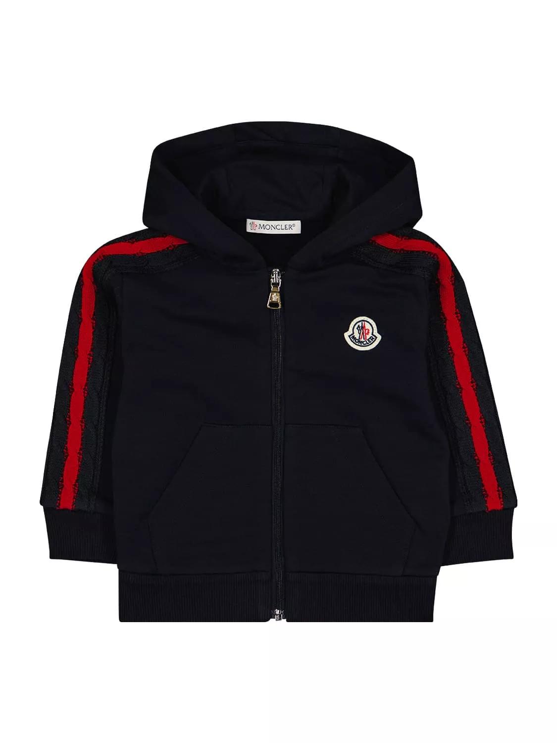 Zip-up sweatshirt, applied logo, side bands on the sleeves.